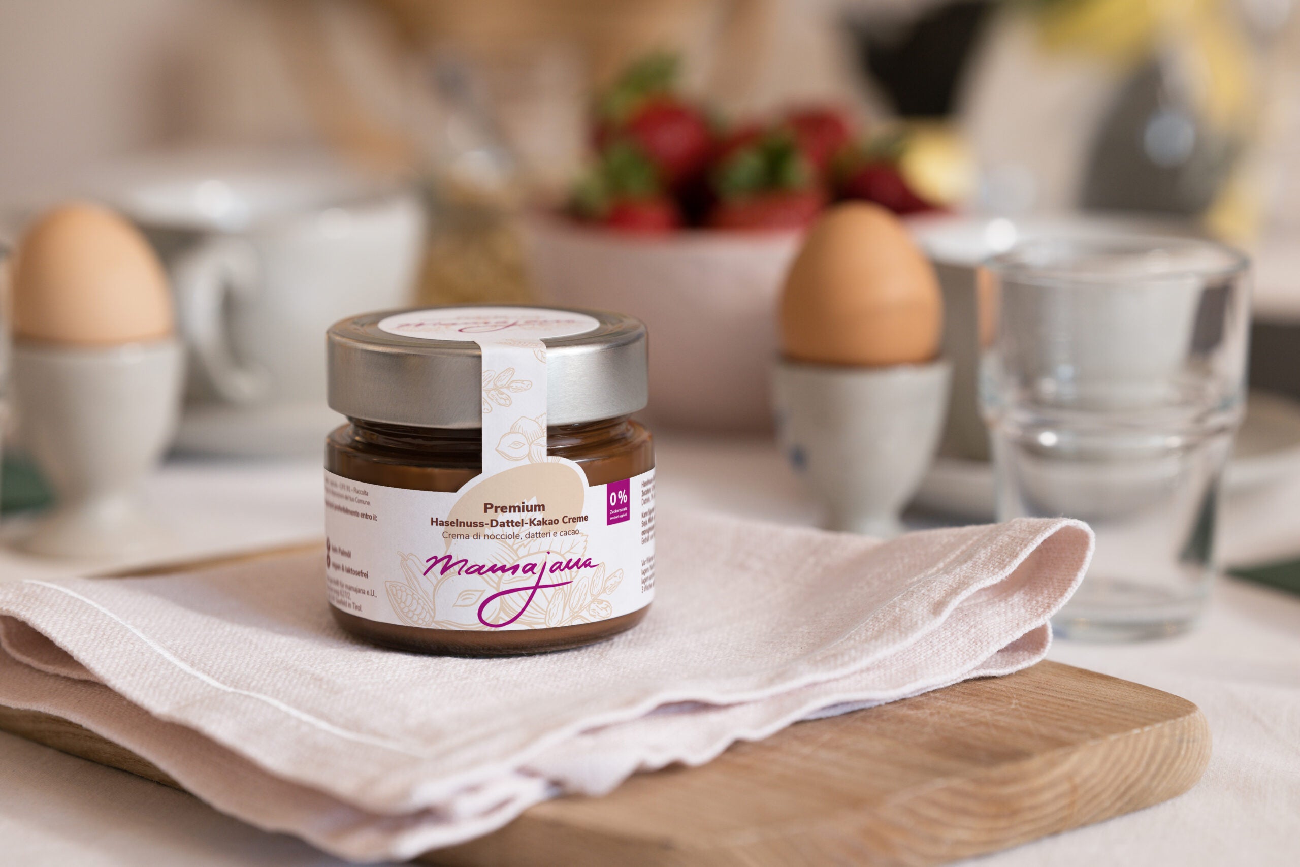 Probier doch mal unsere tolle Haselnuss-Dattel-Kakao Creme, bei uns zu Hause ist das der Hit.
